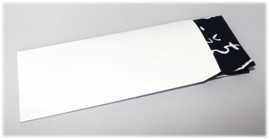 商品は白封筒にお入れしてお送りいたします。数がまとまりましたら、封筒に水引(赤棒または黄棒)や上書き印刷をサービスさせていただきます。ご用命の程お待ちしております。